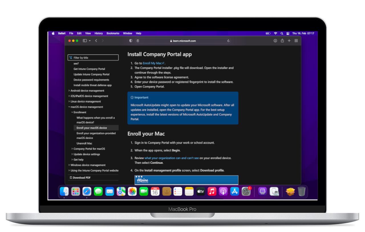 In this post i will show you how you can onboard Apple macOS devices through the Microsoft Company portal to Microsoft Intune. With this onboarding you can push configurations and/or applications from Microsoft Intune to macOS devices or use Compliance policies to grant or deny access over Azure AD conditional access.