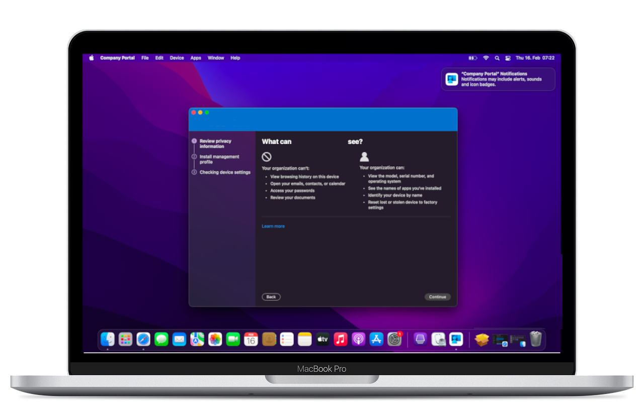 Review the privacy statement to see what your IT department might or might not see over Microsoft Intune from your device.
