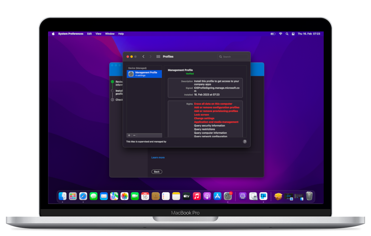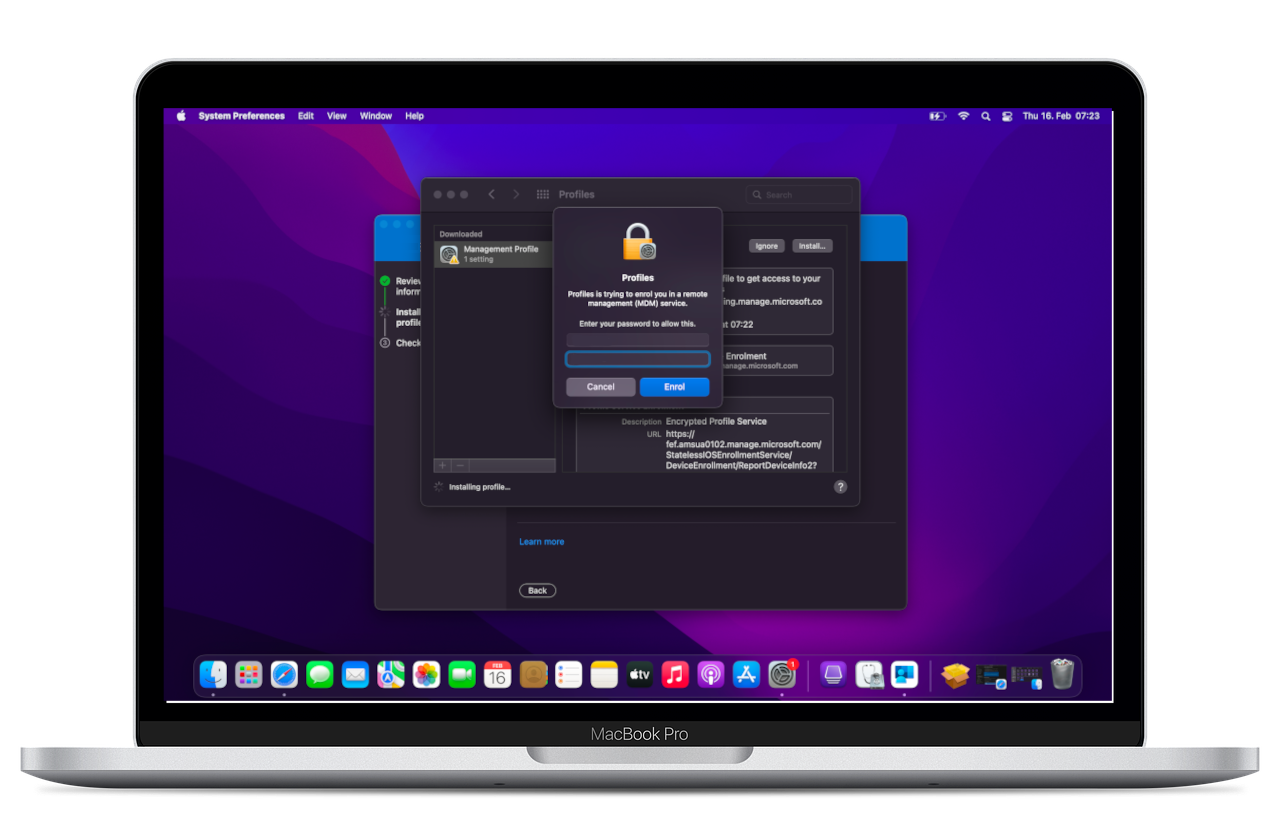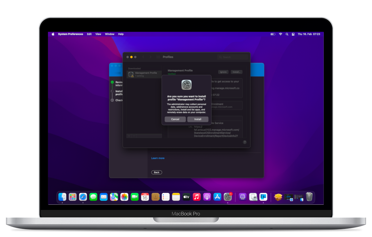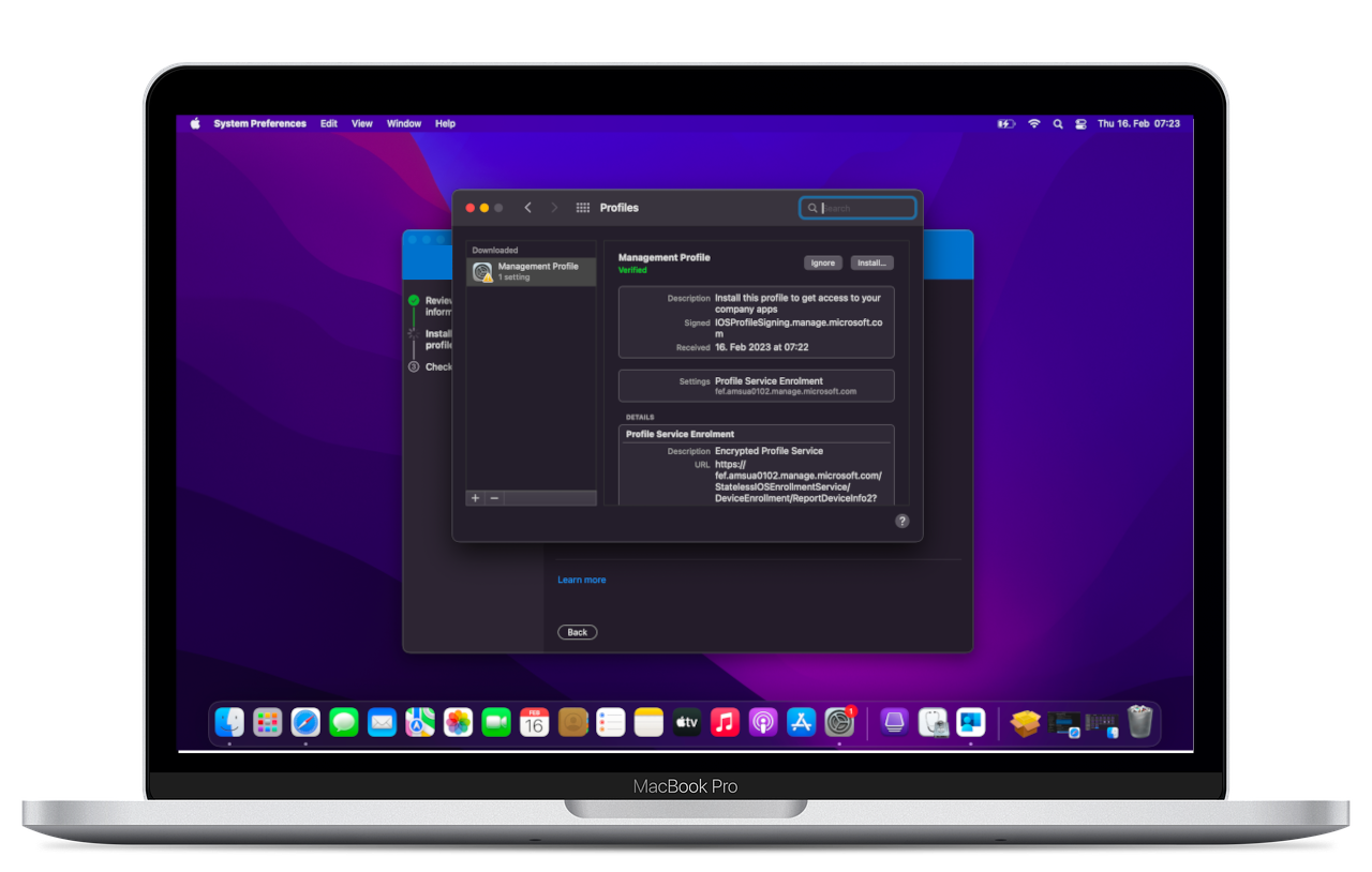 Now we need to download and install the management profile. This profile allows Microsoft Intune to control your device or deploy configurations and applications to it.