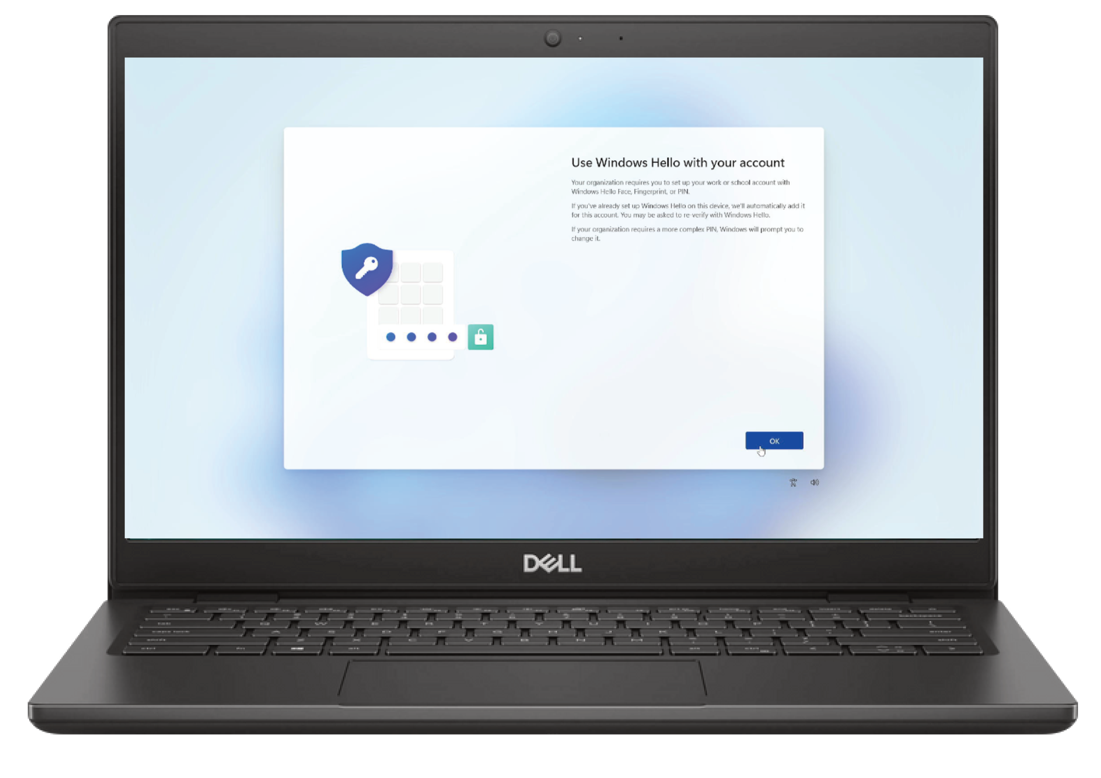 Now you can configure Windows Hello for Business – if this feature was configured by your administrator in Microsoft Intune. Windows Hello supports biometric authentication or authentication by PIN. In this example we will skip the biometrics and configure a PIN.