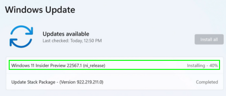 Go back to the Windows Update blade in the Settings and check for the „Windows 11 Insider Preview“ Update: Once all Windows updates have been installed, the Windows 365 Boot feature will be activated!