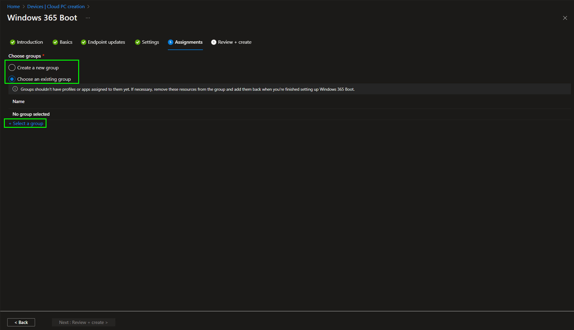 Microsoft recommends assigning the settings to both Windows 11 endpoints that received a device wipe and new endpoints out of the box. If you deploy Windows 365 Boot to an existing Windows 11 endpoint, you should remotely wipe the endpoint afterwards.