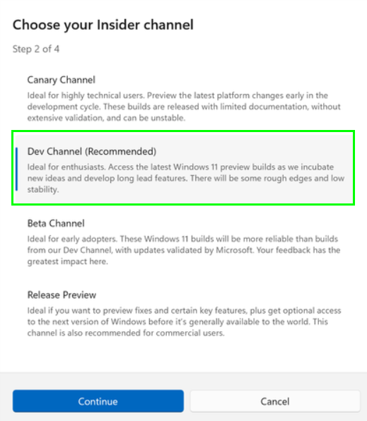 While the Windows 365 Boot is in preview your Endpoints need to be enrolled in the Windows Insider Program to receive Updates from the DEV Channel. To do so, switch to the Settings and select the Windows Update blade. Here follow the steps in the Windows Insider Program view.