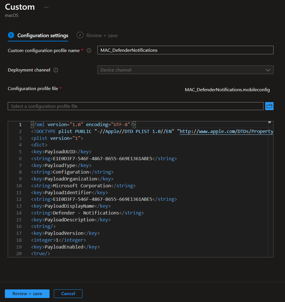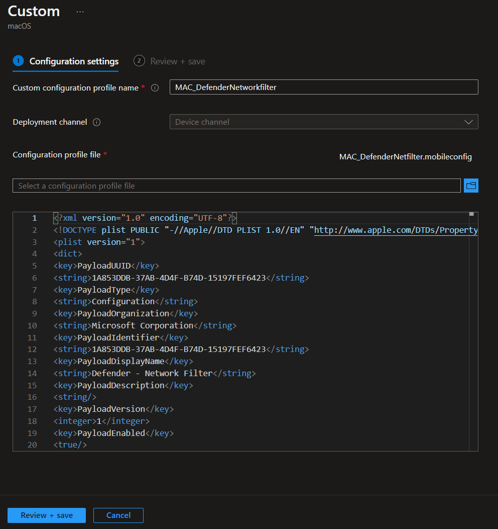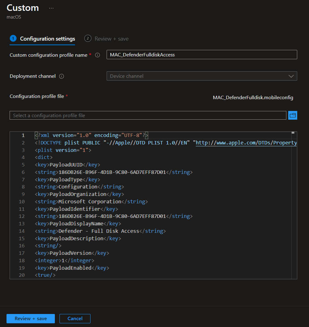 To setup Microsoft Defender for macOS we need to create a few Custom Configuration Profiles in Microsoft Intune. Follow those screenshots to create the profiles and assign them to your macOS device group.