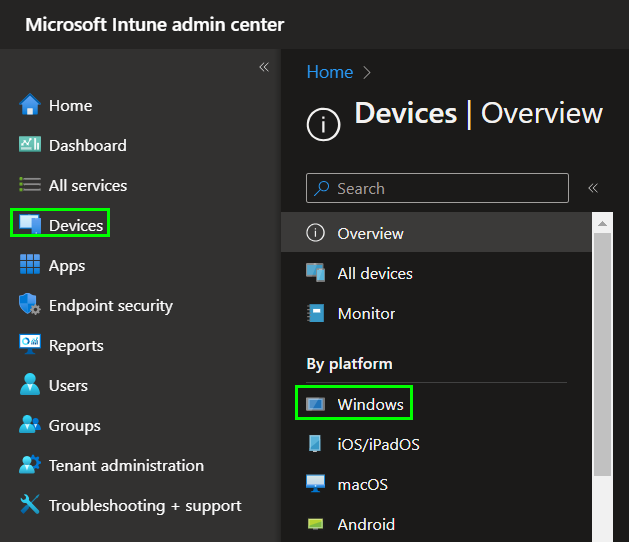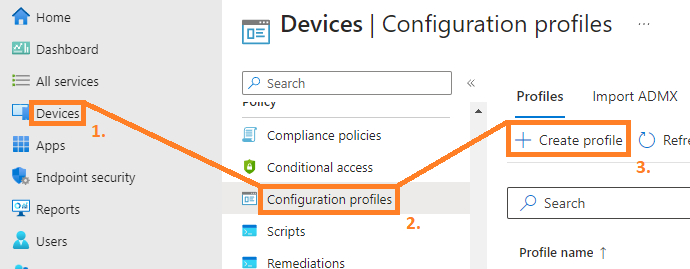 Navigate to https://endpoint.microsoft.com and switch to „Device Configuration“ in the „Windows“ blade under „Devices“: