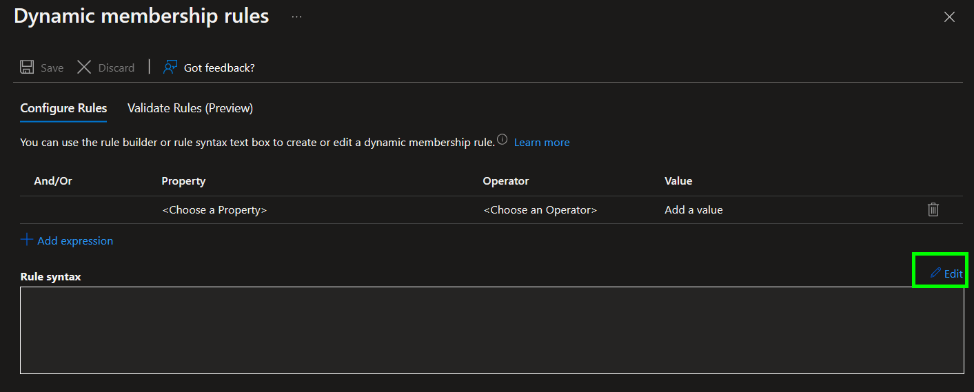 In the Add dynamic query section, click on the Edit button next to Advanced rule.
