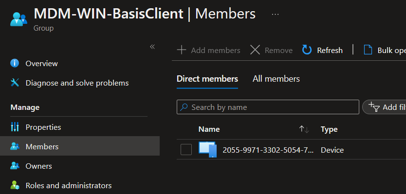 Once the group is created, Azure AD will automatically evaluate the membership rule and include devices that match the criteria. Any device uploaded with an Autopilot hardware hash will be dynamically added to the group, ensuring streamlined access control and management.