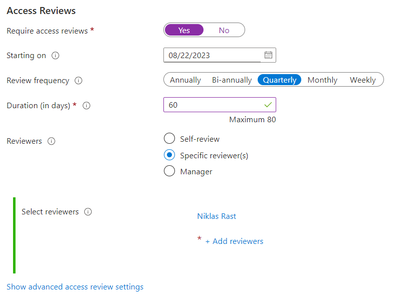 It is also a good idea to configure a regularly access review. So that someone checks if the assigned users need the access anymore or if they can be removed: