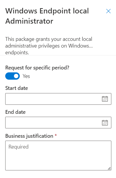 Our solution uses Entra ID Access Packages to automate the process of adding users to an Entra ID group. Once users request the Access Package from https://myaccess.microsoft.com/, they are automatically added to the Entra ID group. This group is subsequently added to the local administrator group on Microsoft Intune managed clients.