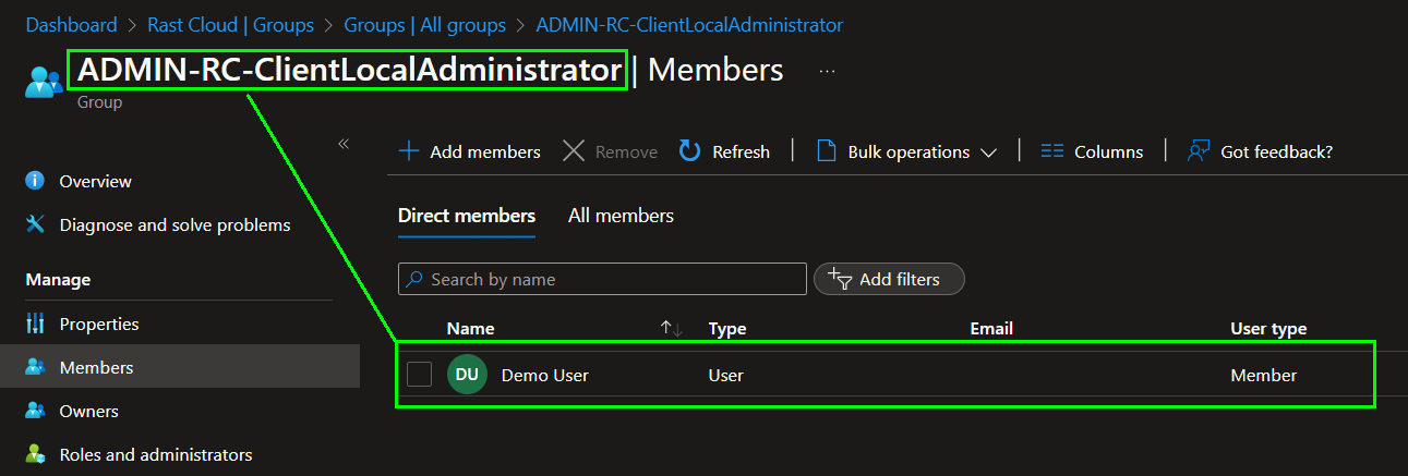 Finally, verify that the users who requested the Access Package are indeed added to the local administrator group on the Intune managed clients. This can be done by the user or by checking the Entra ID group members: