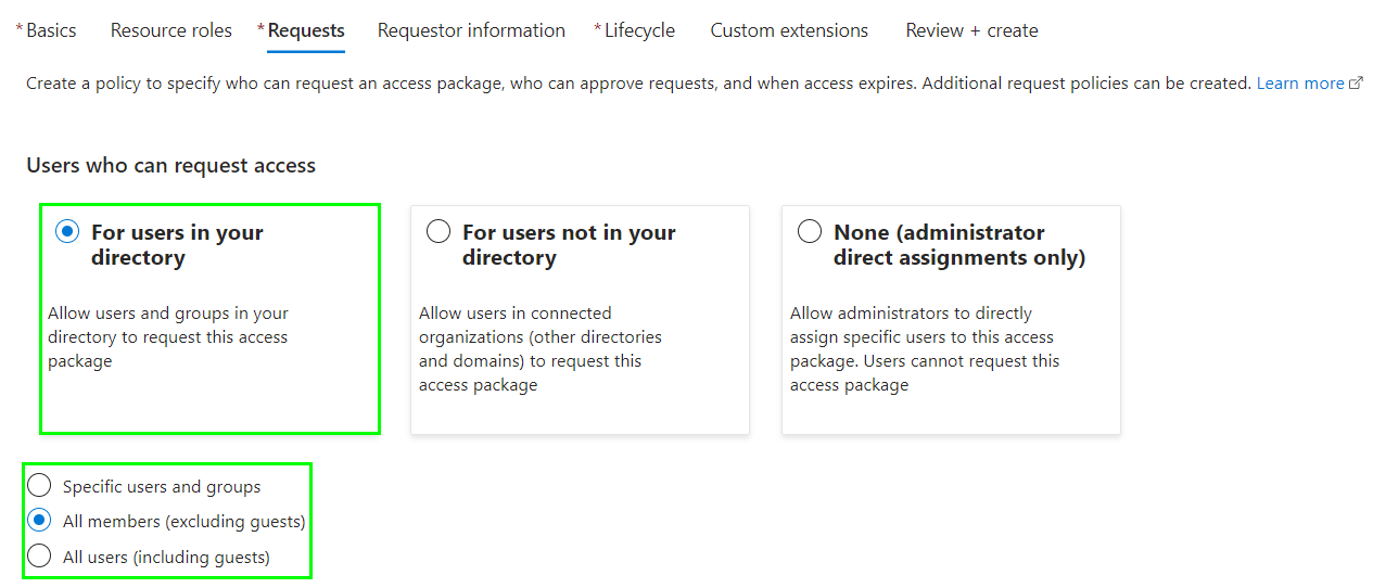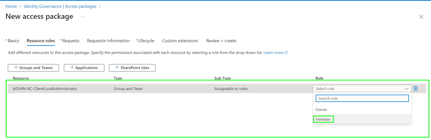 Next, create an Access Package in Entra ID. This package should be configured to grant users access to the Entra ID group created in Step 1.