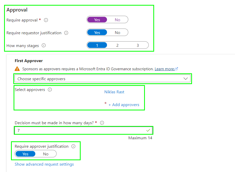 Next, define if a approval is required. For the example with local admin permissions on Windows endpoints I want the request to be approved from my admin account: