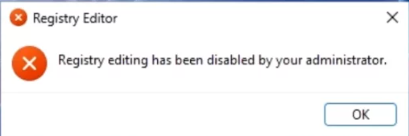Validation: If a user attempts to launch Regedit.exe, a message will appear, notifying them that a policy setting prevents the action.