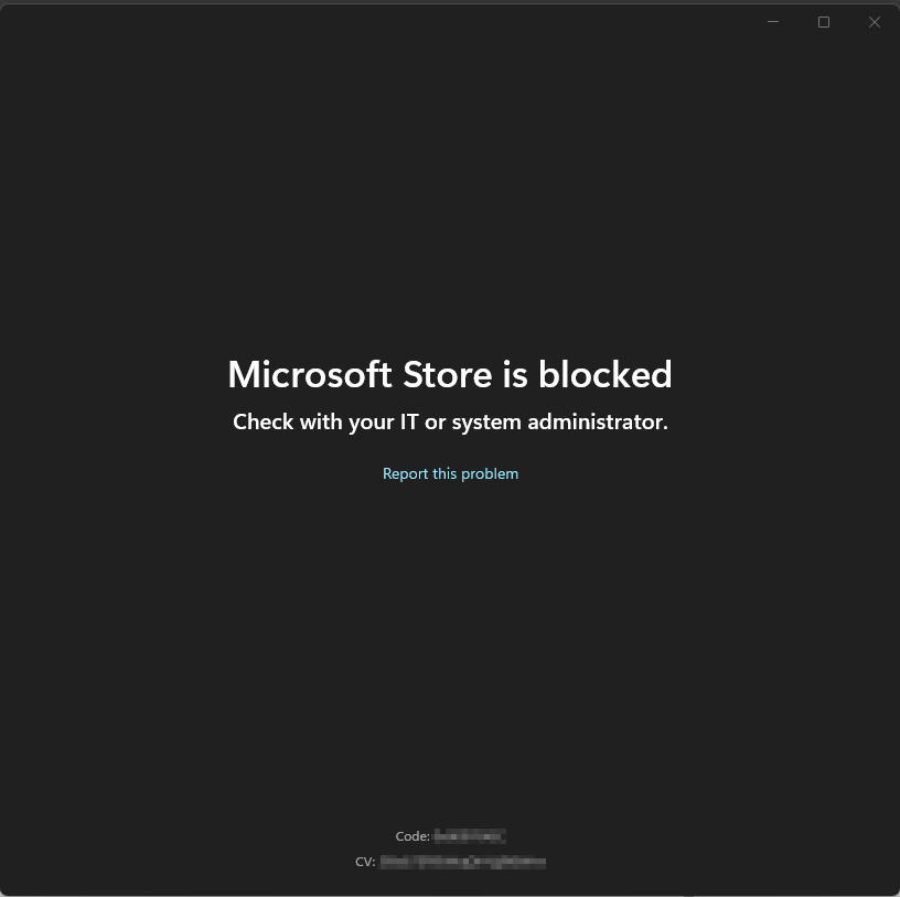 Once the policy has been synced and applied on your devices users no longer can access the Microsoft Store app, instead they will see this block warning: