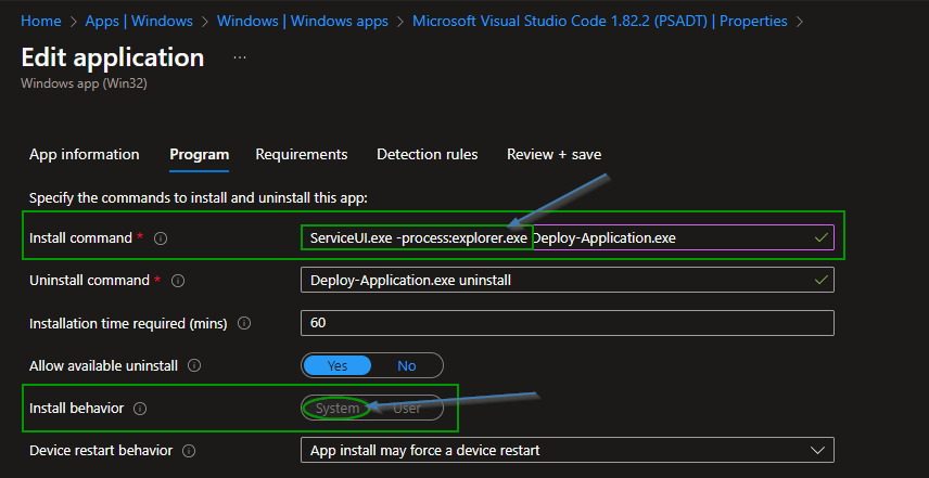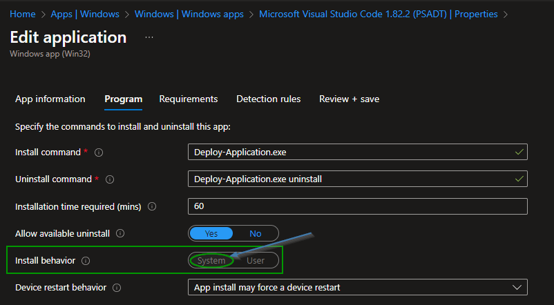 And how can we use this in Microsoft Intune when settings the Install behavior to System?
