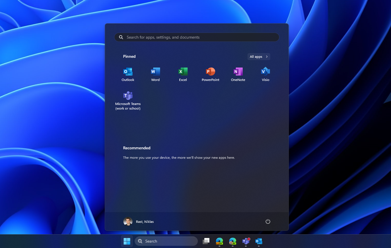 In my opinion it is the easiest way to configure the start menu on an Windows 11 device manually, capture it and deploy the configuration with Intune to all other devices. I defined some default apps on my pilot device in the start menu: