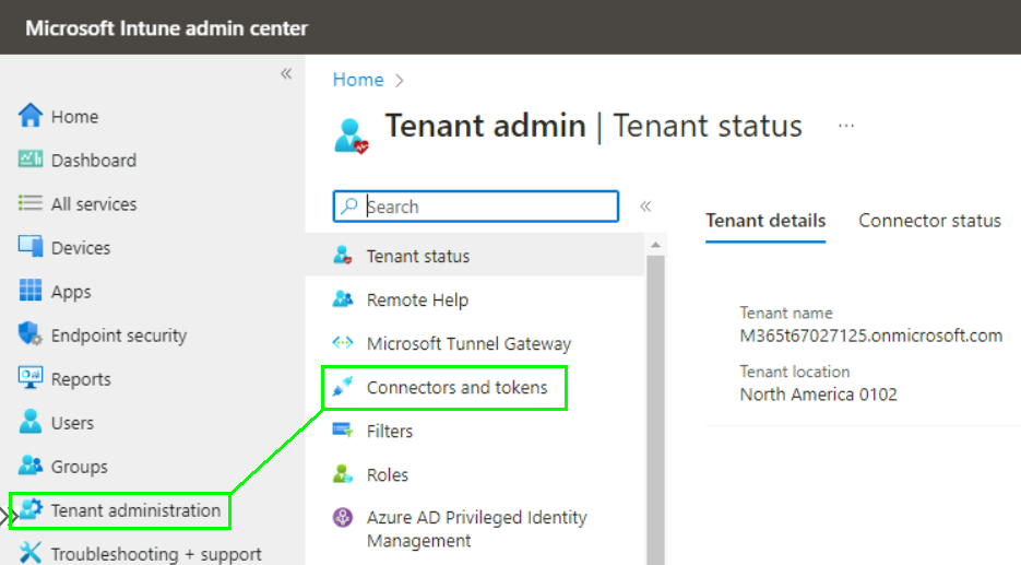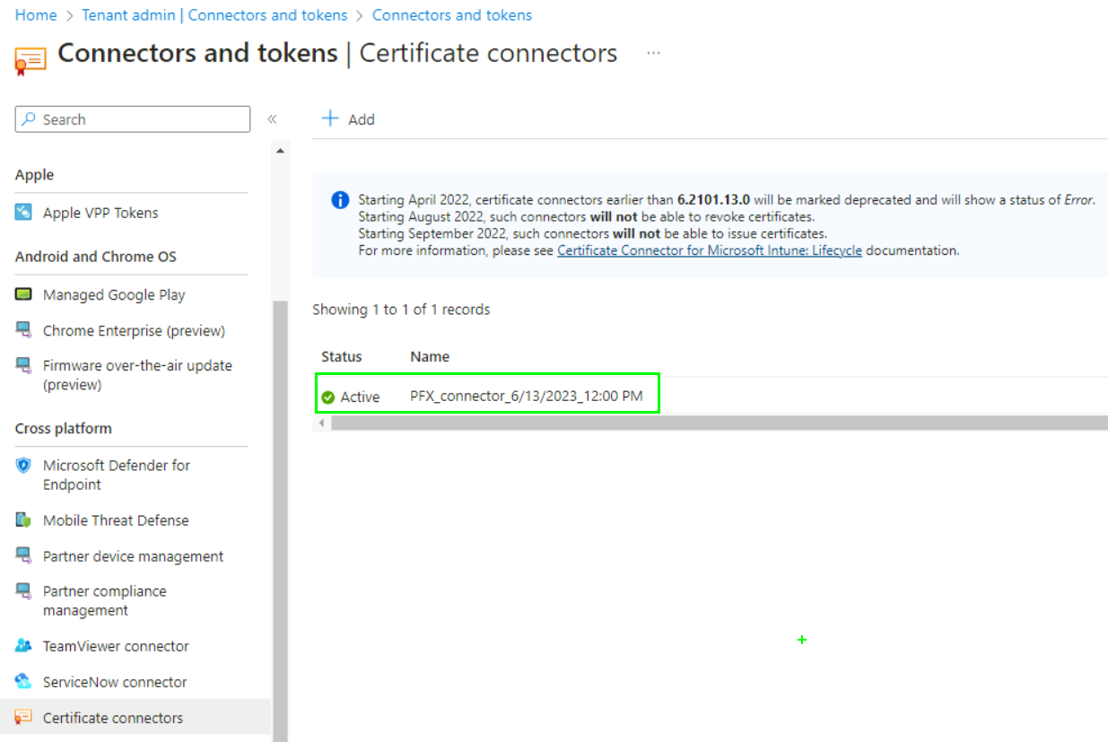 You can now see an active connector in your Intune environment, when you refresh the page where you’ve downloaded the connector: