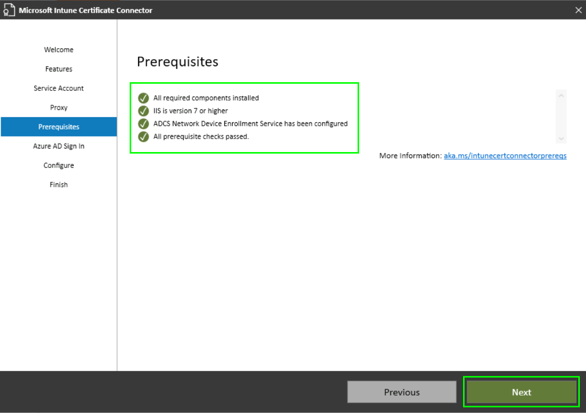If everything is ok, the wizard will tell you when you’re missing some perquisites: