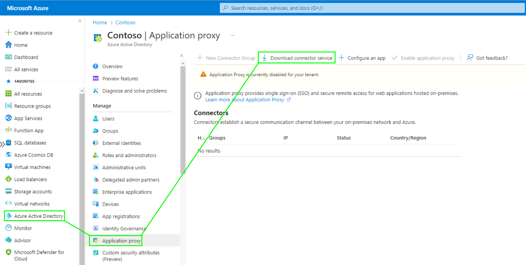 Start by navigating to https://portal.azure.com and switch to the „Application proxy“ in the „Azure Active Directory“ blade and download a new connector service:##