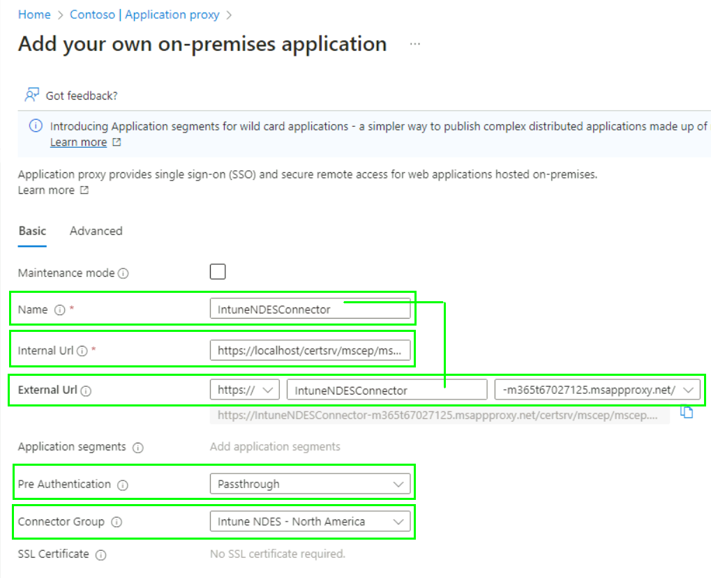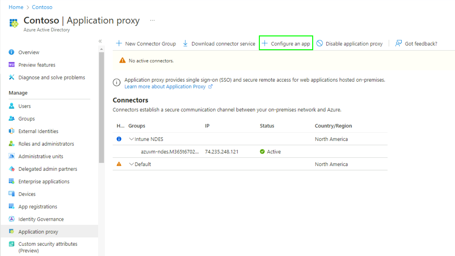 Now the NDES Connector is published securely over Azure AD App Proxy to the Internet.