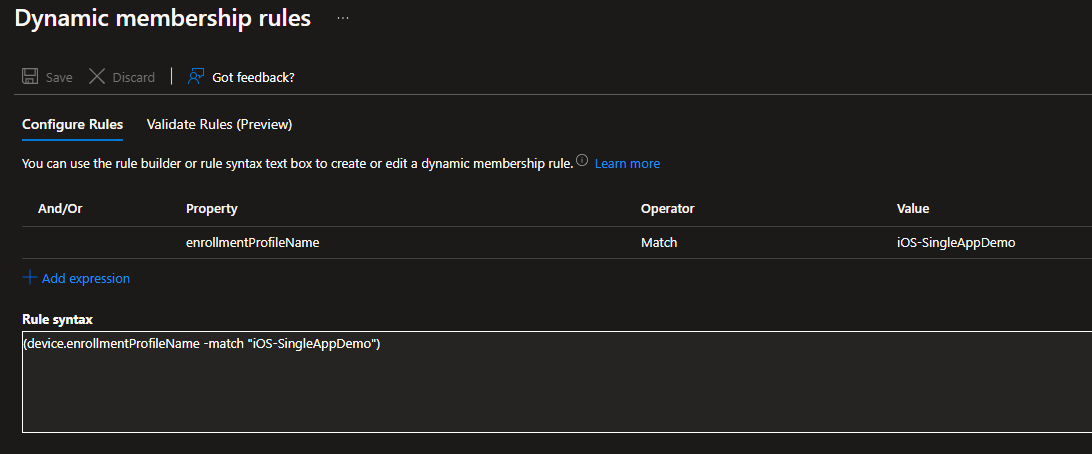(device.enrollmentProfileName -match "iOS-SingleAppDemo")