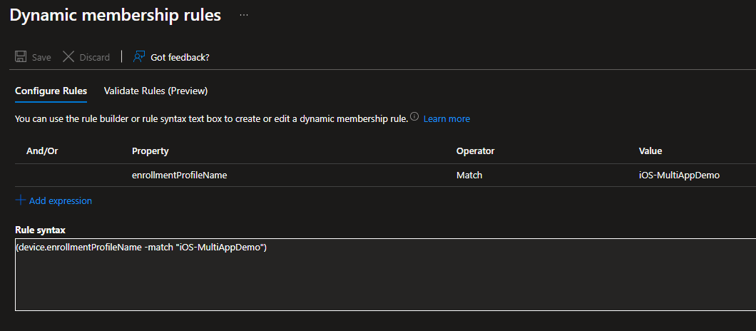 (device.enrollmentProfileName -match "iOS-MultiAppDemo")