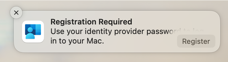 Now that we have everything setup and applied to our devices firstly the users will see this prompt in the top right side where macOS sends push notifications to: