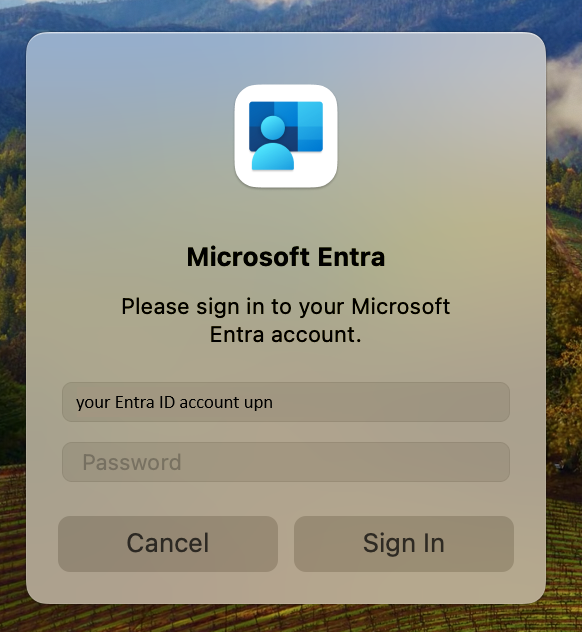 Now this prompt will already be filled with your upn and you need to enter your Entra ID password again: