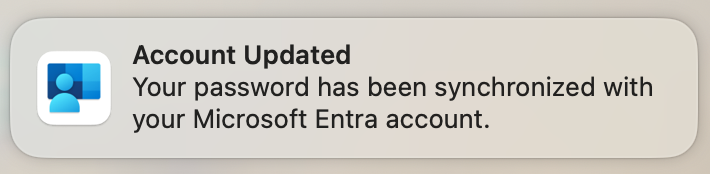 Once you`ve clicked on „Sign In“ 1 or 2 seconds later macOS will tell you that your password has been updated and synced with your Entra ID account: