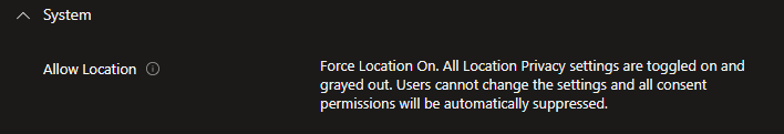 You can disable, allow or enforce allow location services. I will enforce allow it on my devices here.
