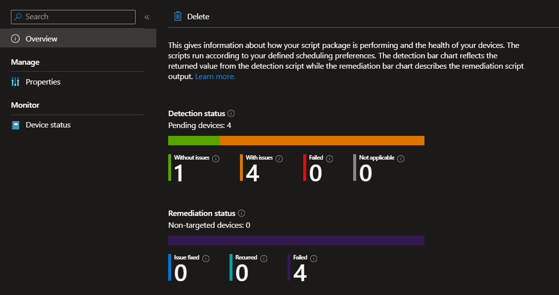 In case that you want to check if and how often this remediation is running you can use the build-in Overview from the remediation as needed.
