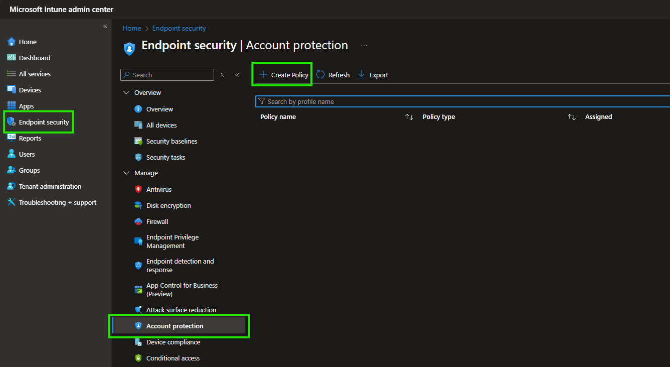 Account Protection policies in Microsoft Intune allow administrators to configure security