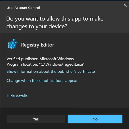 Once, I clicked Yes to approve the UAC request the Regedit-App opened and as you can see, sections where elevation are required are now available: